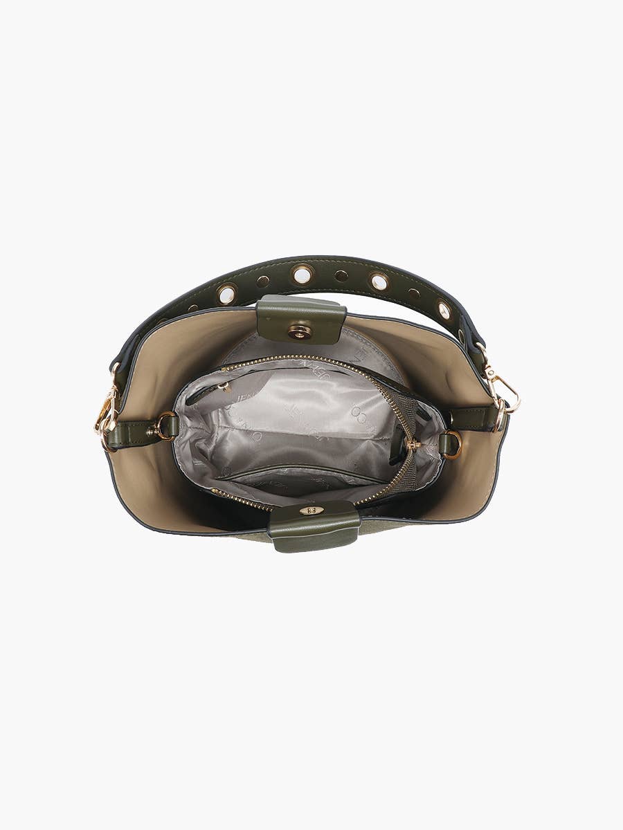The Farrah Suede Bucket Bag brings cozy texture and effortless style to the season—ideal for a chic, transitional piece in a luxe faux suede finish.